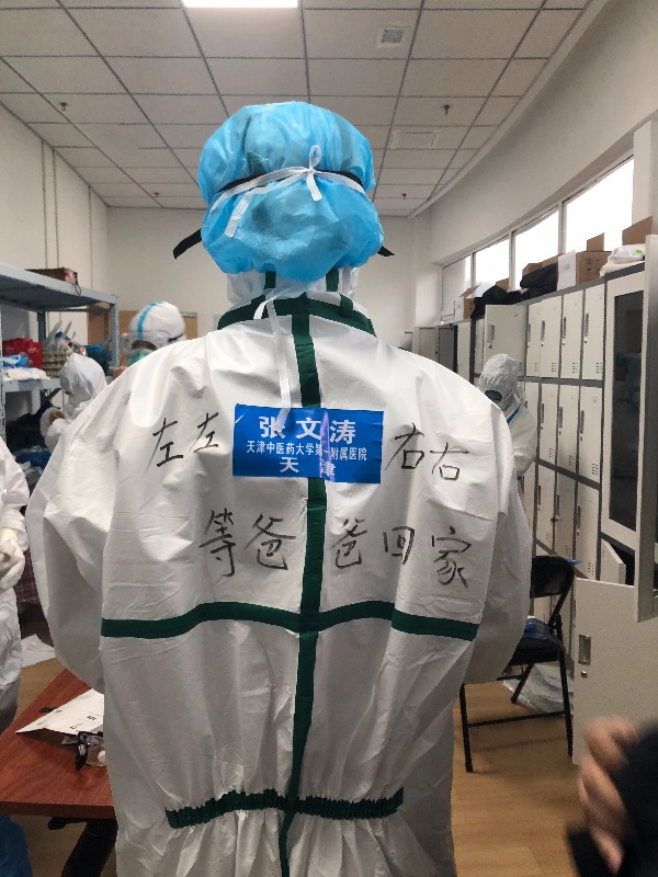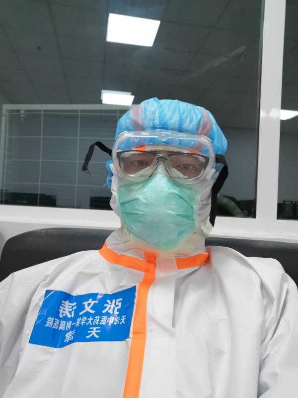 除了身体上的考验,心理的压力更让人觉得这项任务负重致远。谁能忘生死,为医则无畏。新冠病毒来势凶猛,部分医护人员在充分防护下仍被感染,且各年龄段的死亡病例陆续出现,巨大的心理压力一步步逼近奋战在一线的医护人员,但他们任然义无反顾的冲上前线。在张文涛第一次进舱工作时,就经历了非常惊险的一幕。一次协助同事为患者配餐过程中,他的护目镜被别人意外触碰,不慎滑落,造成眼部暴露。在密闭的方舱中,病毒会以气溶胶的形式大量存在,而眼部的暴露,极易被感染,风险很大。因进舱前经过严格的培训,护目镜脱落的那一刹那,他迅速闭上双眼,在同事的搀扶护送下紧急出舱,按照流程脱下防护服,进行面部消毒,整个过程处置得当,将感染风险降至最低。但是仍然给他造成了极大的心理压力,压力来源于担心:他担心自己病倒会给组织添麻烦,他担心自己病倒后同事会少了一个战友却多了一个病患,他担心自己病倒会再次加重同仁的心理压力,同时他也想到了远在天津的家人还在翘首期盼他的凯旋……他迅速调整心态,没有将这个意外告诉家人,独自承担这份压力。他说,真正的勇士,就是要敢于直面身体和心理的双重压力。之后,他依然忘我的投入到日常的工作中,在他和同事们的努力下,方舱内出院的患者越来越多。虽然疫情还未结束,他和他的同事们坚信,在所有人的共同努力下,病毒终被战胜,春暖花开的日子即将到来。