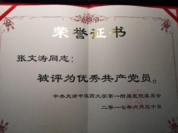 | 2017年 | 中共天津中医药大学第一附属医院委员会 | 优秀共产党员 |