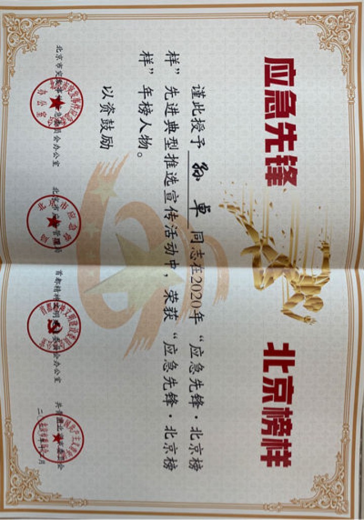 | 2020年 | 北京市应急管理局、北京团市委 | 应急先锋·北京榜样 |