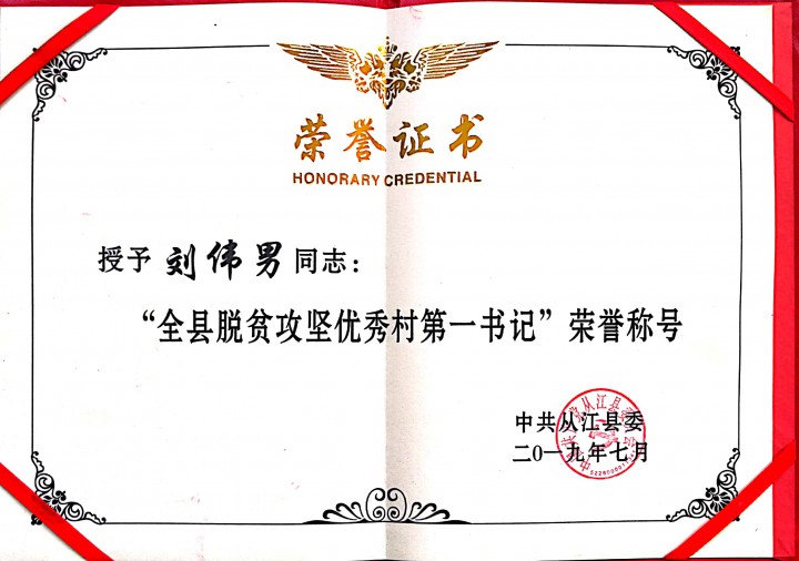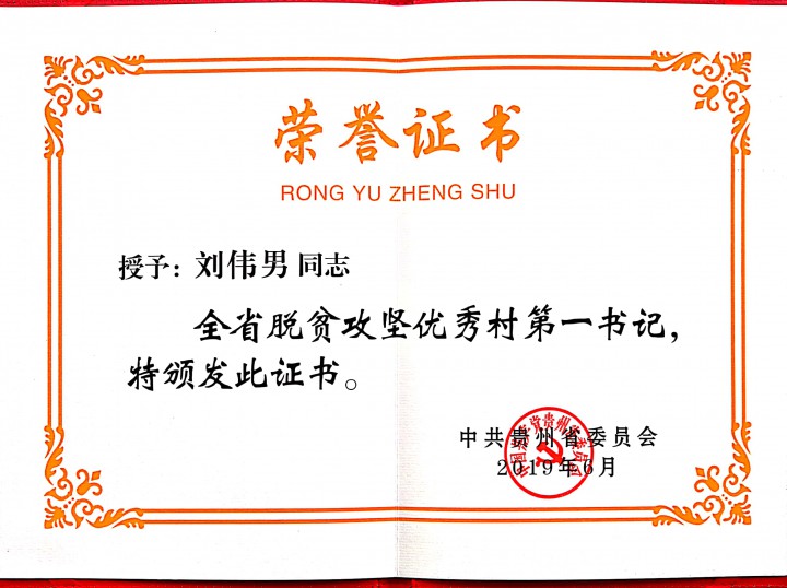 | 2019年 | 中共贵州省委 | 贵州省脱贫攻坚优秀村第一书记 |