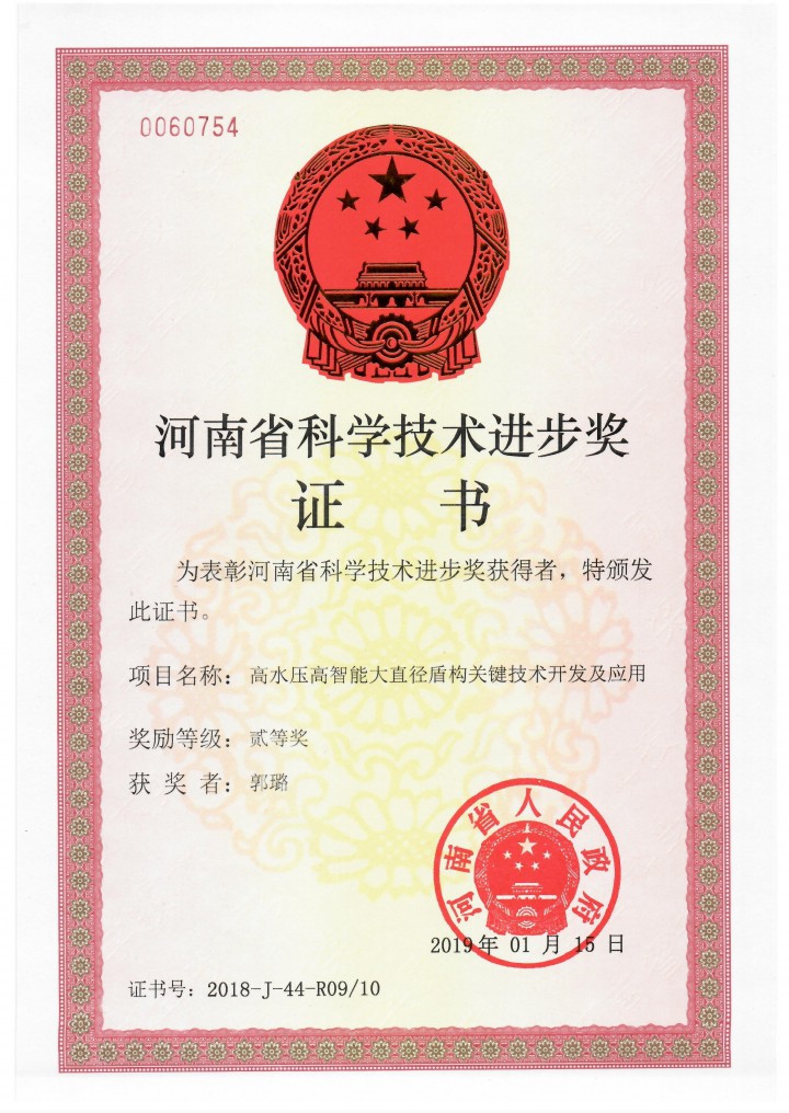 2019年 | 河南省人民政府 | 河南省科技进步二等奖 |