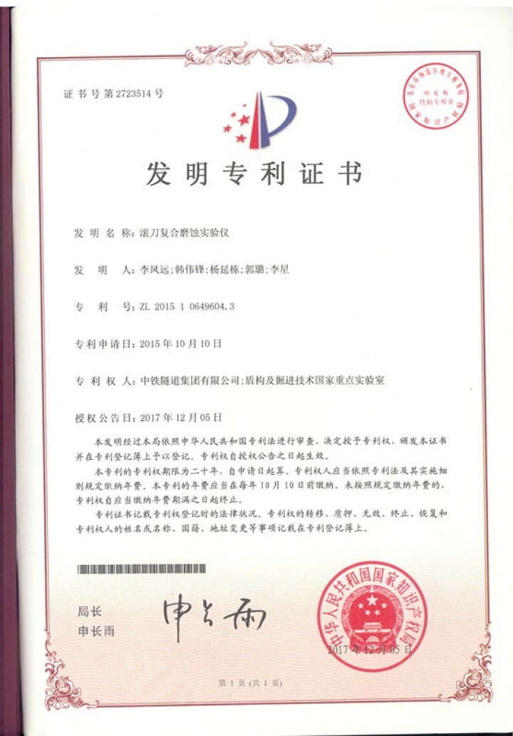 盾构刀具作为盾构机的“牙齿”,是盾构掘进系统的关键部件,直接影响到盾构机的掘进速度、施工成本和工程质量。为了保护和利用好这颗牙齿,她和团队成员专门开展了国家973课题《深部复合地层TBM系统适应性设计理论与评价决策系统》和中国中铁课题《高磨蚀性地层盾构及TBM刀具磨损预测研究》等课题的研究工作。针对现场施工刀具磨损严重难题,她和团队成员广泛调研反复实验,从全国近20个项目取回近1000个岩石样品,开展岩石磨蚀系列实验、滚刀磨损实验、元素成分分析实验等800余组,经历了百余次的失败后,终于自主研制出了国内首台“滚刀磨损试验平台”,并获得国家发明专利。该平台可检验不同类型的“牙齿”在不同状态的下磨损规律。其技术成果应用到了亚洲在建最长铁路隧道——34.5公里长的大瑞铁路高黎贡山隧道、国内在建超大直径(15.1米)海底隧道——汕头苏埃通道海湾隧道、国内超大直径(15.8米)泥水盾构——深圳春风隧道等国家重难点工程项目,降低生产成本近2500万元,带来了巨大的经济效益和社会效益,减少了安全风险,成果荣获2017年度河南省科学技术进步二等奖。