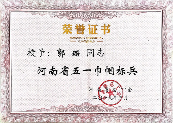 2019年 | 河南省总工会 | 河南省五一巾帼标兵 |