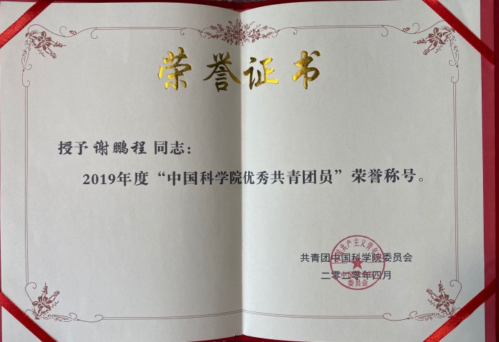 | 2020年 | 中国科学院 | 中国科学院优秀共青团员 |
