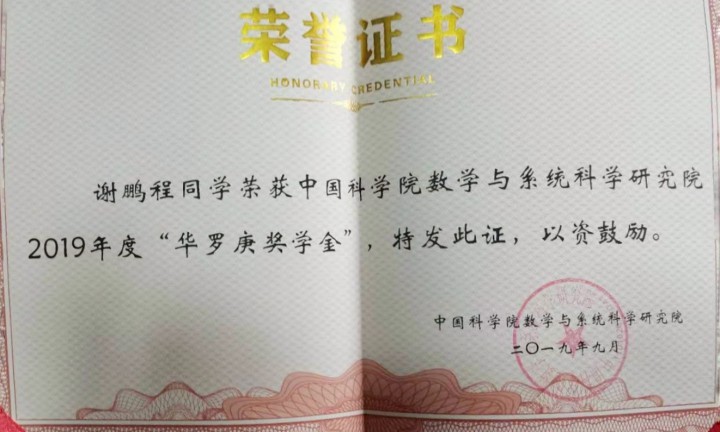 | 2019年 | 中国科学院 | 华罗庚奖学金 |
