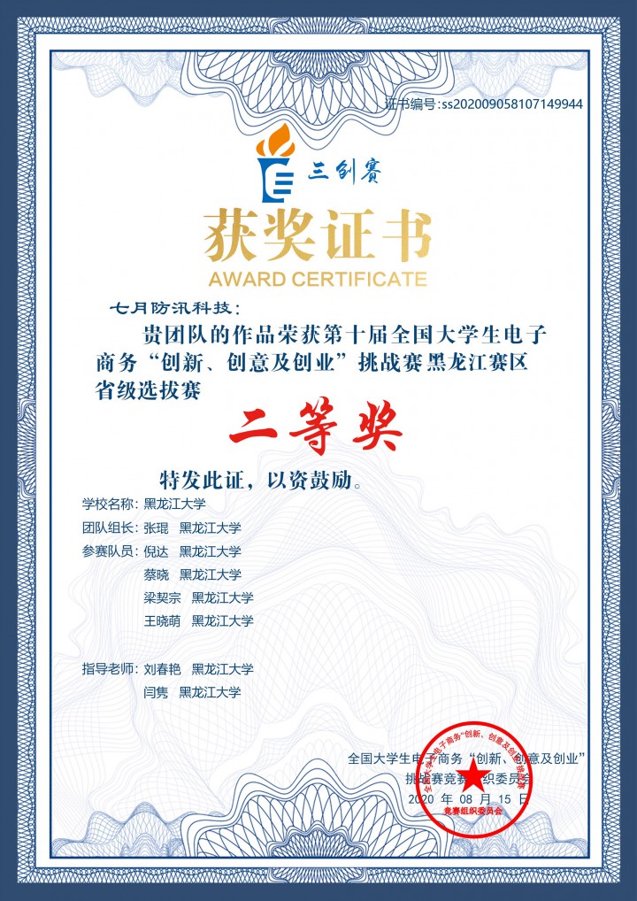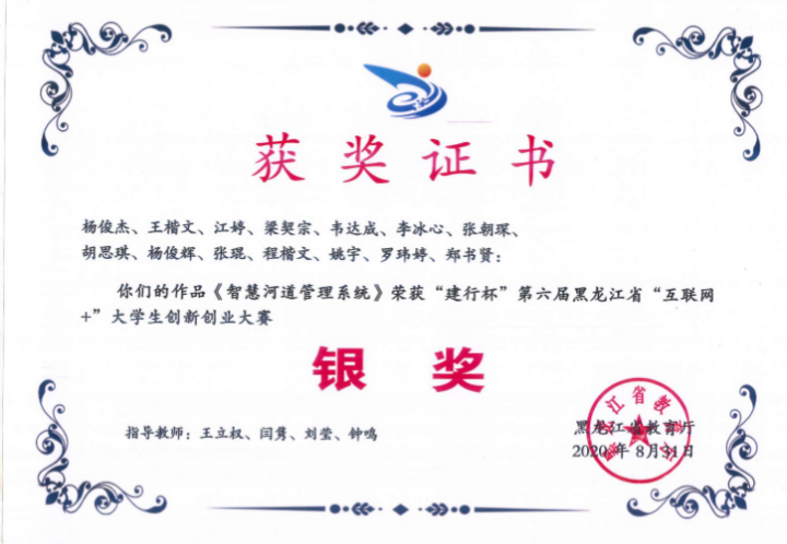 | 2020年 | 黑龙江省教育厅 | 第六届中国“互联网+”大学生创新创业大赛 |