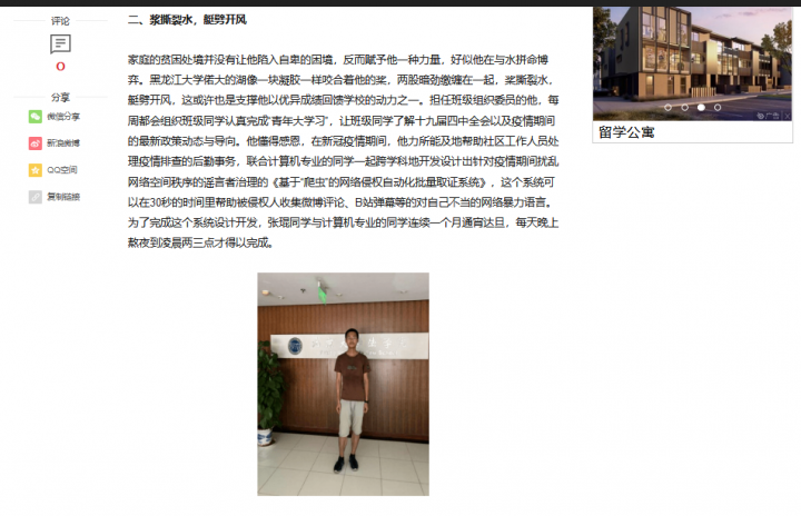 草儿的破土依赖着泉水的滋养与浇灌,他深知,肥美的草儿需要懂得回馈。新冠疫情期间,他主动帮助社区工作人员处理疫情排查的后勤事务,充分发挥自己所学的法律知识,联合计算机专业同学跨学科地设计出针对疫情期间扰乱网络空间秩序谣言者治理的《基于“爬虫”的网络侵权自动化批量取证与裁判文书生成系统》,系统可以在30秒内帮助被侵权人迅速收集微博评论、B站弹幕等对自己不当的网络暴力语言,并通过EXCEL表格进行可视化证据目录梳理,自动生成起诉状等法律文书。为完成本次系统开发,他与计算机专业的同学连续一个月通宵达旦,每晚熬夜至凌晨两三点才得以完成。