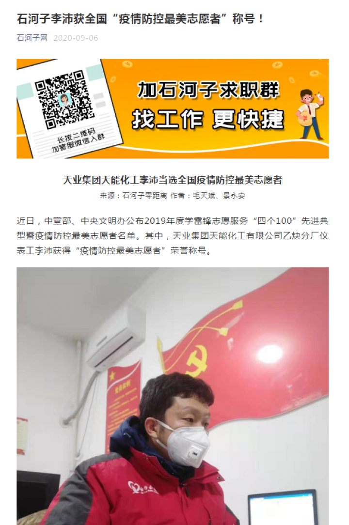 新疆天业集团天能化工厂乙炔车间员工、石河子白杨青少年公益发展中心理事、第八师石河子市青年志愿者协会会员