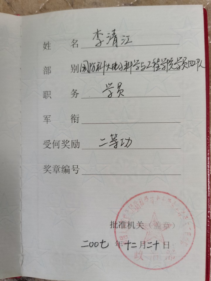 | 2007年 | 二等功 |