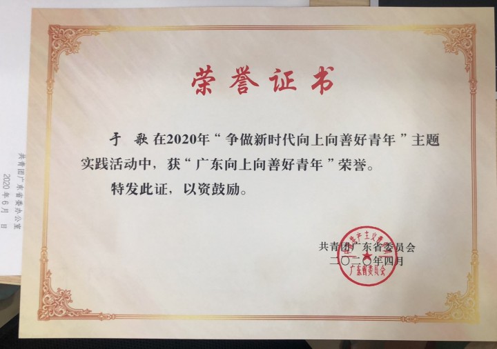 | 2020年 | 共青团广东省委员会 | 广东向上向善好青年 |