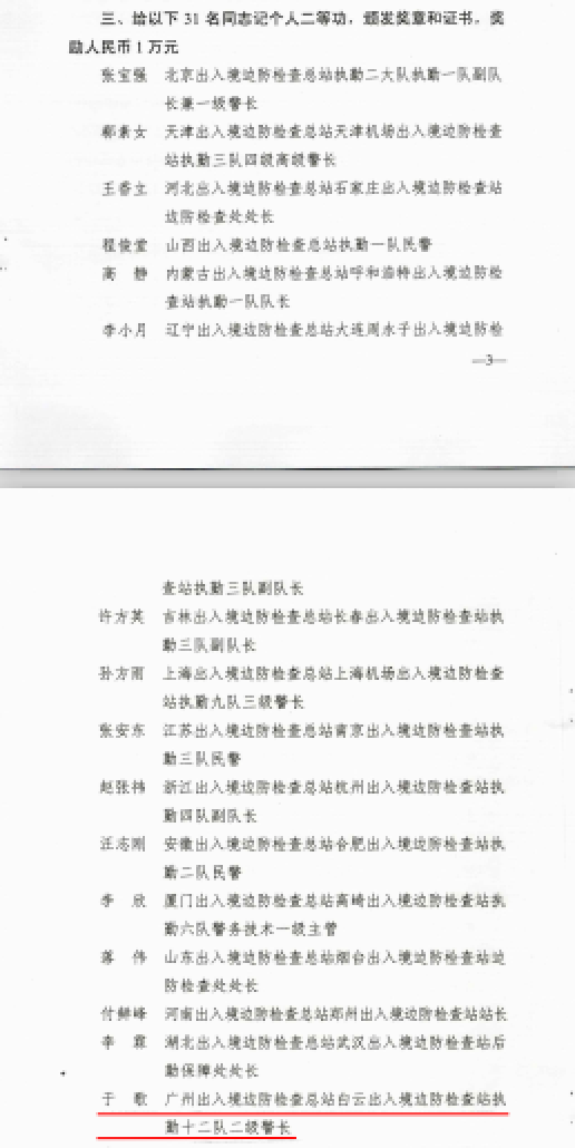 | 2020年 | 国家移民管理局 | 个人二等功 |