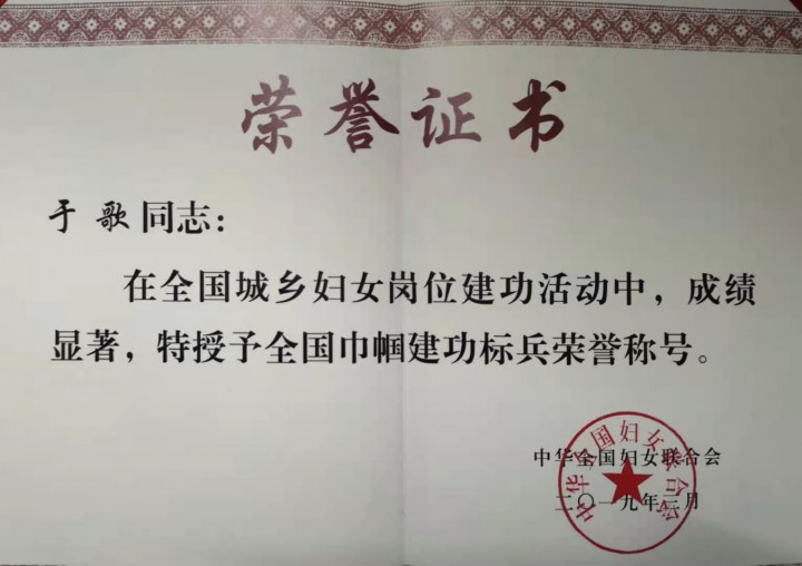 | 2019年 | 全国妇联 | 全国巾帼建功标兵 |