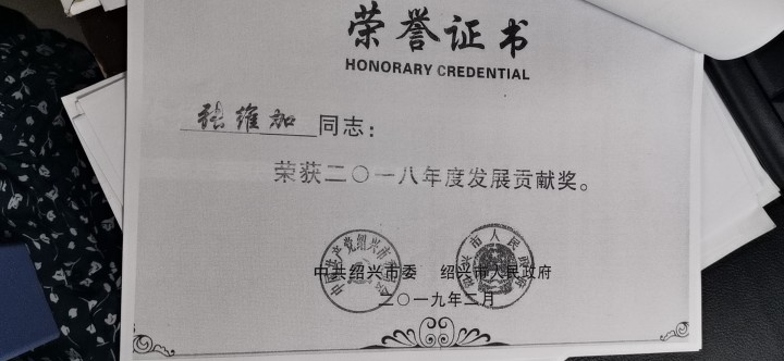 | 2019年 | 中共绍兴市委/绍兴市人民政府 | 2018年度发展贡献奖 |