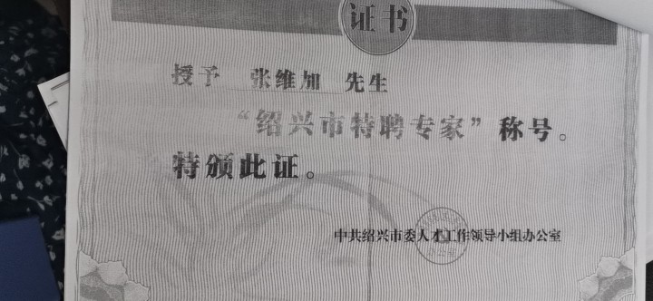 | 2016年 | 中共绍兴市委人才工作领导小组办公室 | “绍兴市特聘专家”称号 |